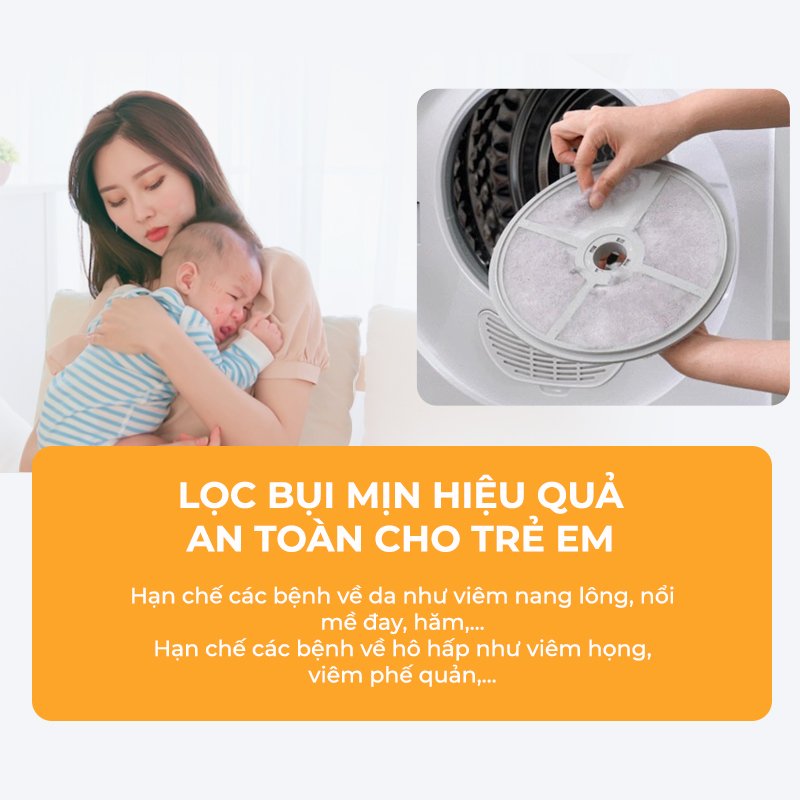 Khả năng lọc 99.9% bụi quần áo, hạn chế các bệnh về da như mụn, viêm nang lông, dị ứng, hăm ở trẻ nhỏ,...